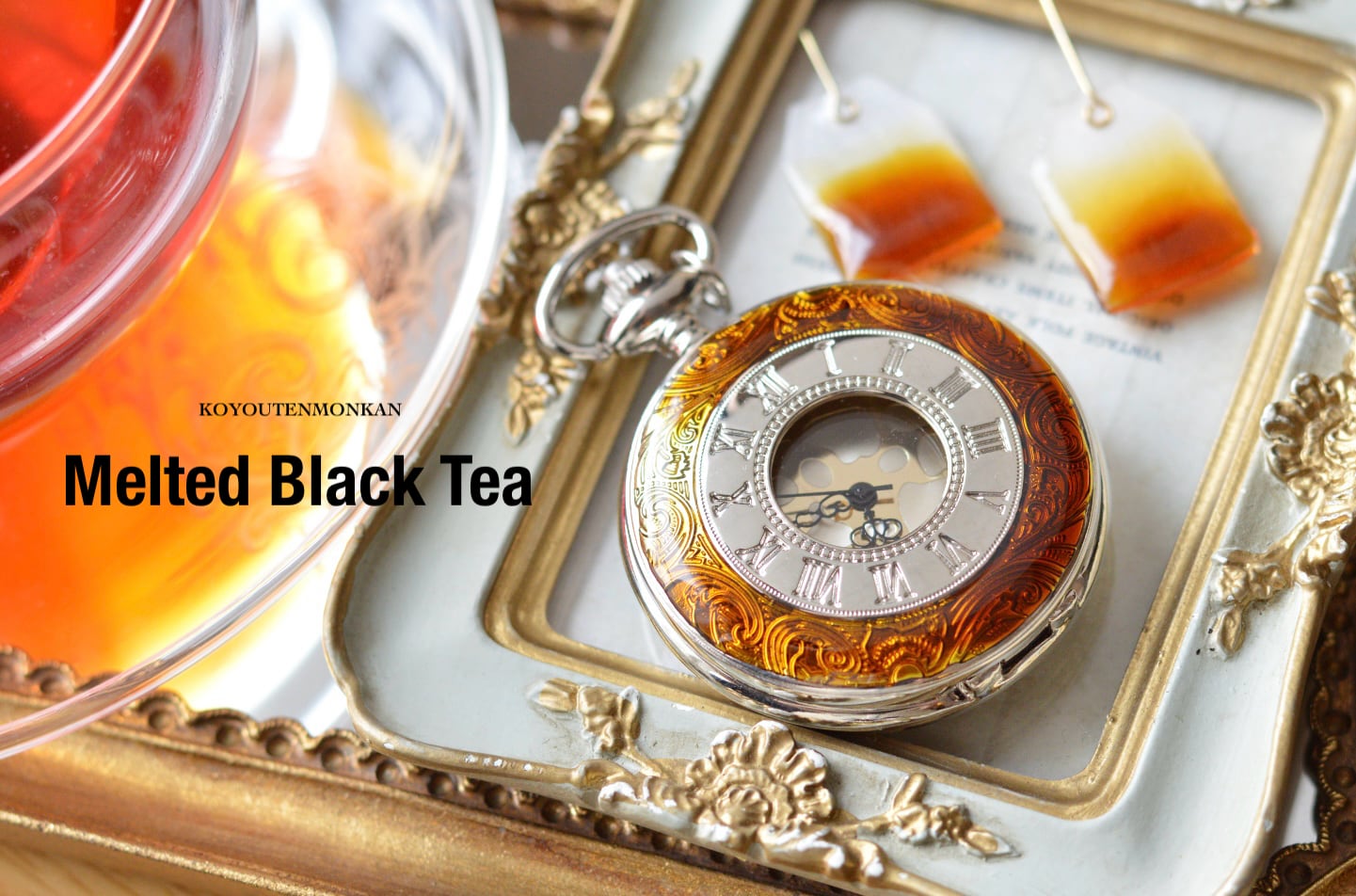 三日月をイメージしたグラデーションに溶け出す紅茶色をつけた懐中時計です